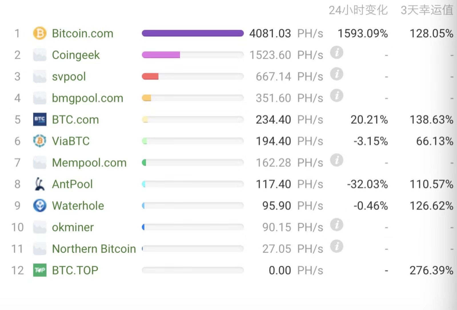 01:18,Bitcoin.com 算力突然增加,可能是比特大陸把原本用來挖 BTC 的算力全部切換到了 BCH。
