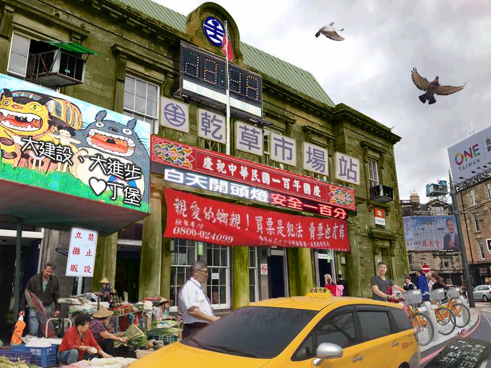 | 原本的英國甘草市場站 | 加了一點華國風格後的甘草市場站 |