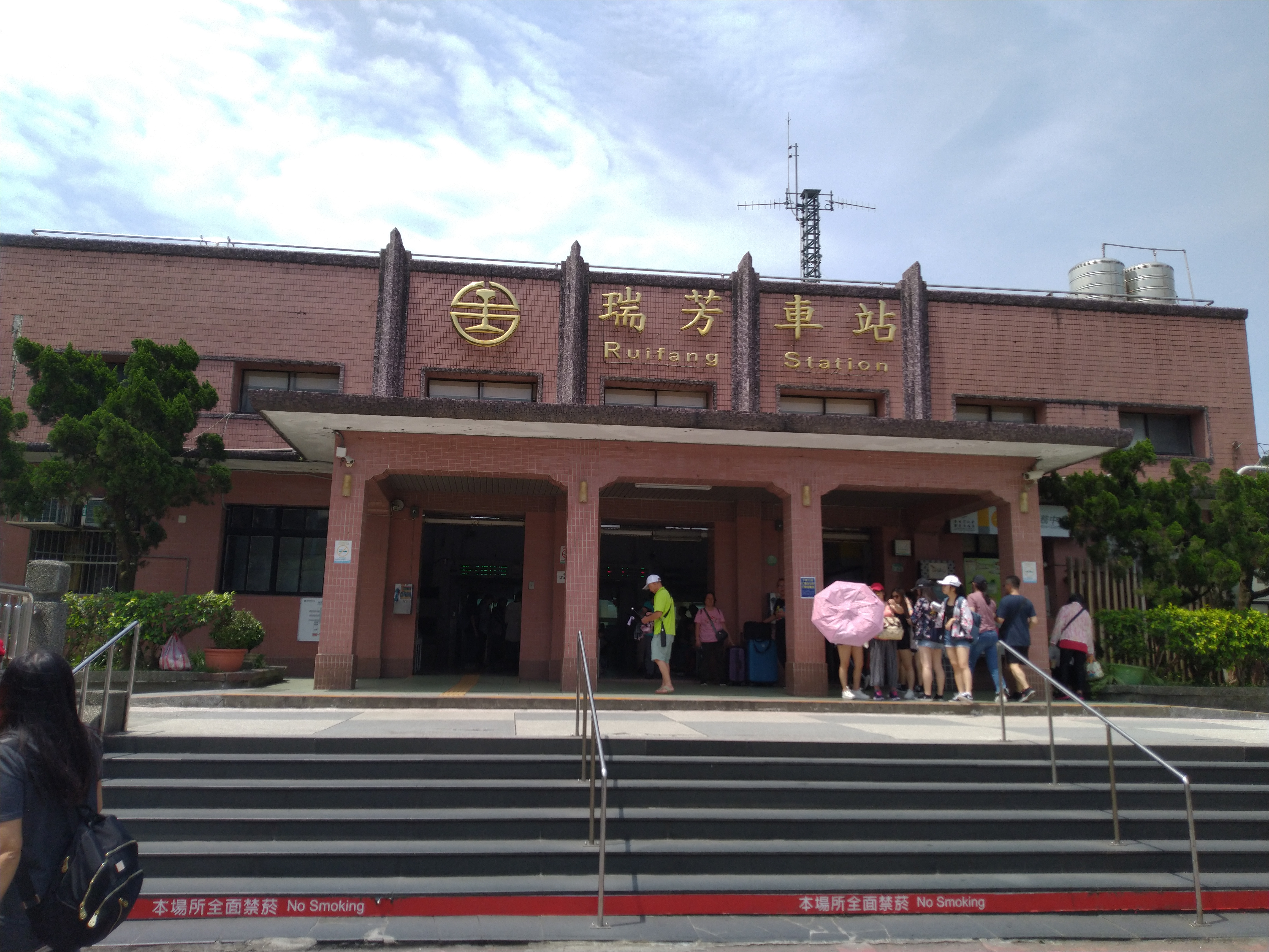 接著是瑞芳車站,該站最早可以追溯到 1921 年的「瑞芳驛」,當時仍是木造建築,在戰後 1954 年被國民政府爆改成如今的「水泥方塊」,到了 1999 年外牆改貼紅色磁磚,散發出資本主義社會下的現代主義風格。站內牆上的管線大量外露,不加修飾,彷彿是蒸氣龐克(steampunk)的風格;而橫樑上還留有慶祝國家大事時(例如蔣中正的生日,沒錯,這就是國家大事)要貼慶祝字眼的橫額裝飾。此外,由於該站鄰近觀光區九份,加上影視作品的加成,吸引了大量日韓觀光客前來朝聖,所以站內設有日文與韓文標示,是全台少數幾個設有英文以外文字的車站之一(另外一個很有名的叫作中壢車站,站內有泰文、越南文和印尼文)。