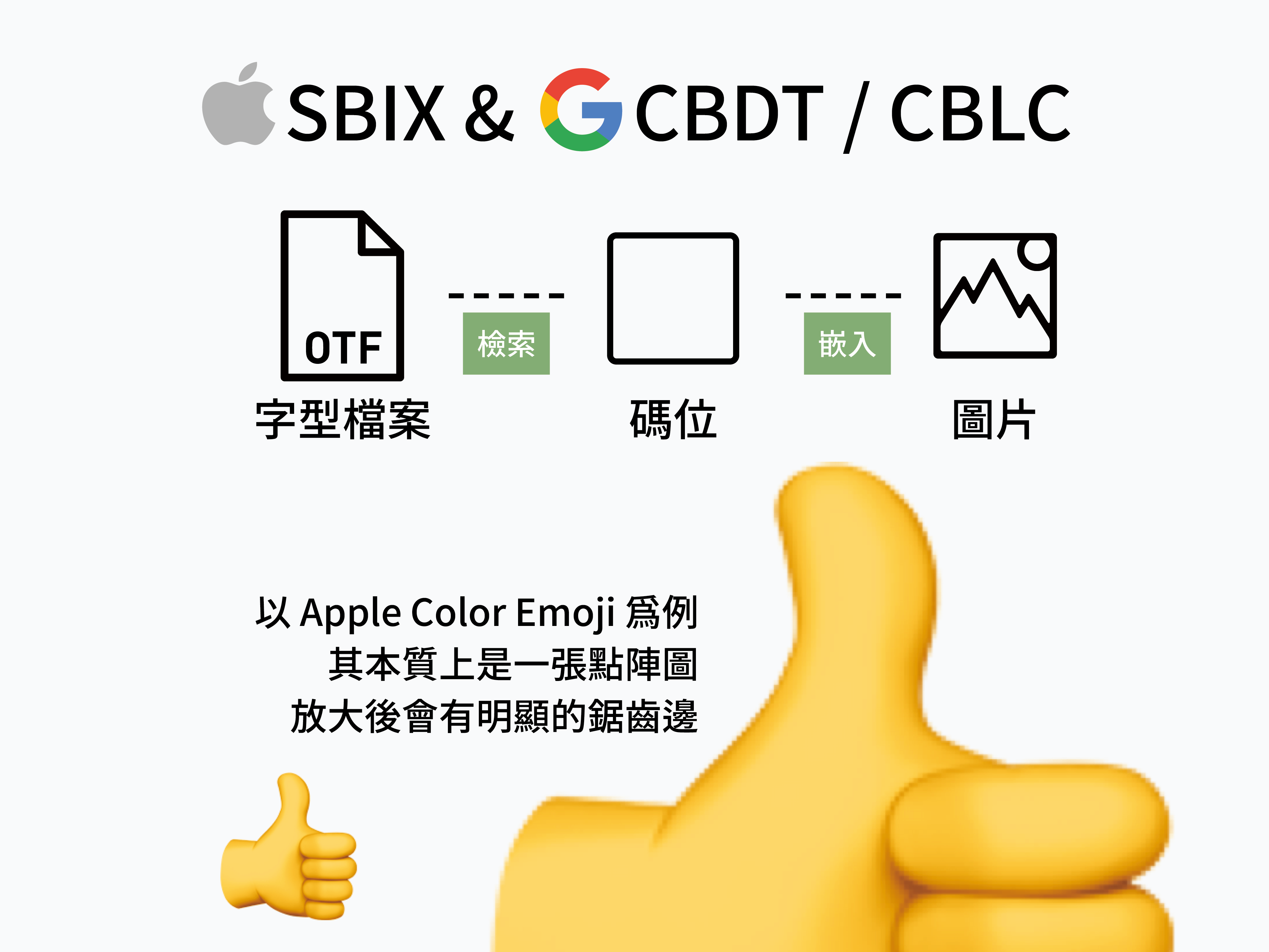 Apple 的 SBIX 與 Google 的 CBDT/CBLC