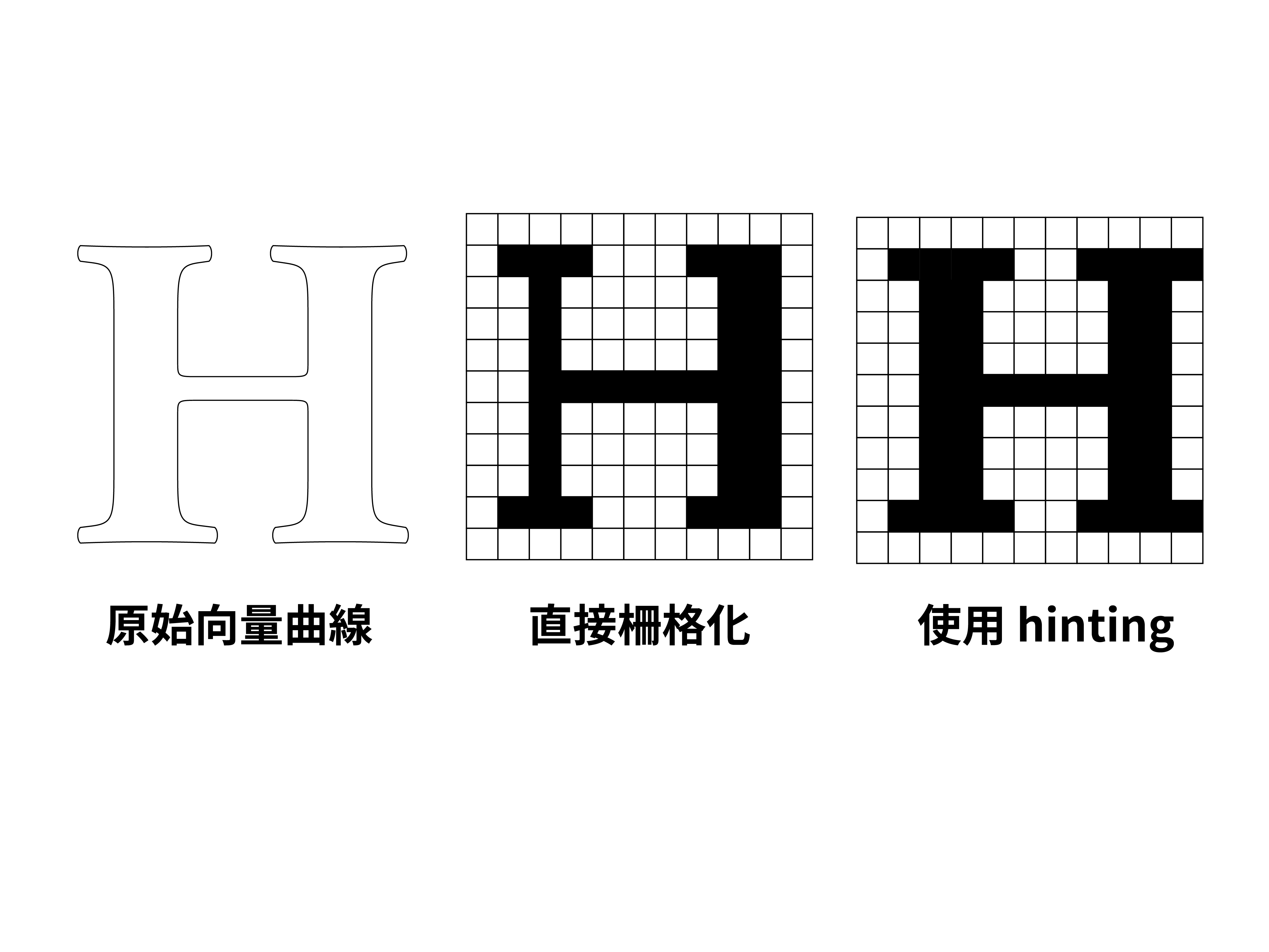 可以說,字符由過去單純被動的被柵格化,變成可以主動要求柵格化時要保留的資訊,大大提升了的字型顯示品質。