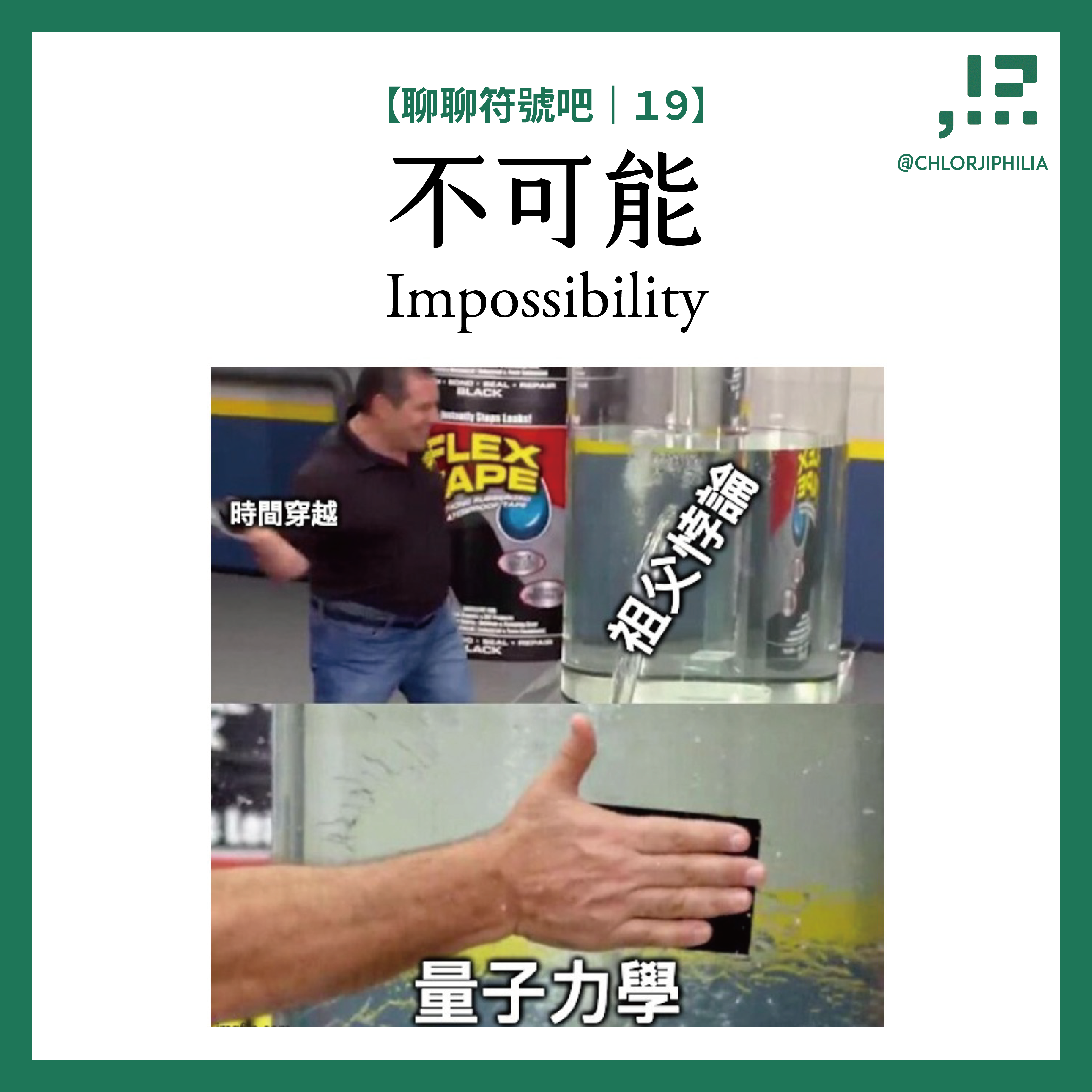 另外,依現行的科技和對世界的理解,我們也沒辦法穿越時空,但這同樣也不阻礙我們去想像和未來子孫、或是和過去的自己相見歡,亦不影響編劇家和小說家寫出一篇又一篇離奇的穿越故事;甚至我們還想出了祖父悖論(grandfather paradox)── 這個建立在不可能前提下的倫理問題。