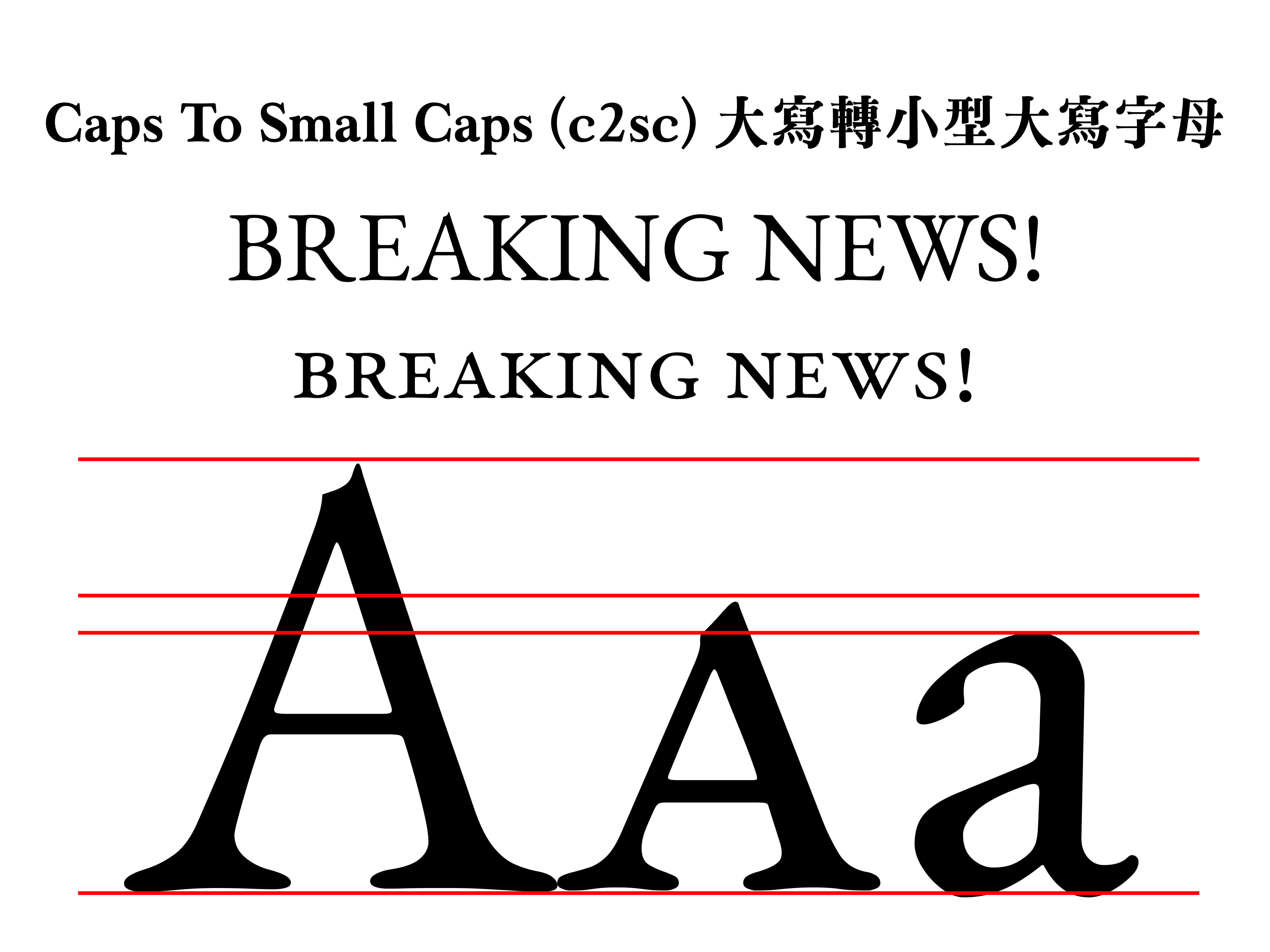 和 smcp 相對的,如果想把「大寫」轉成「小型大寫字母」,則需要增加 c2sc 特性。