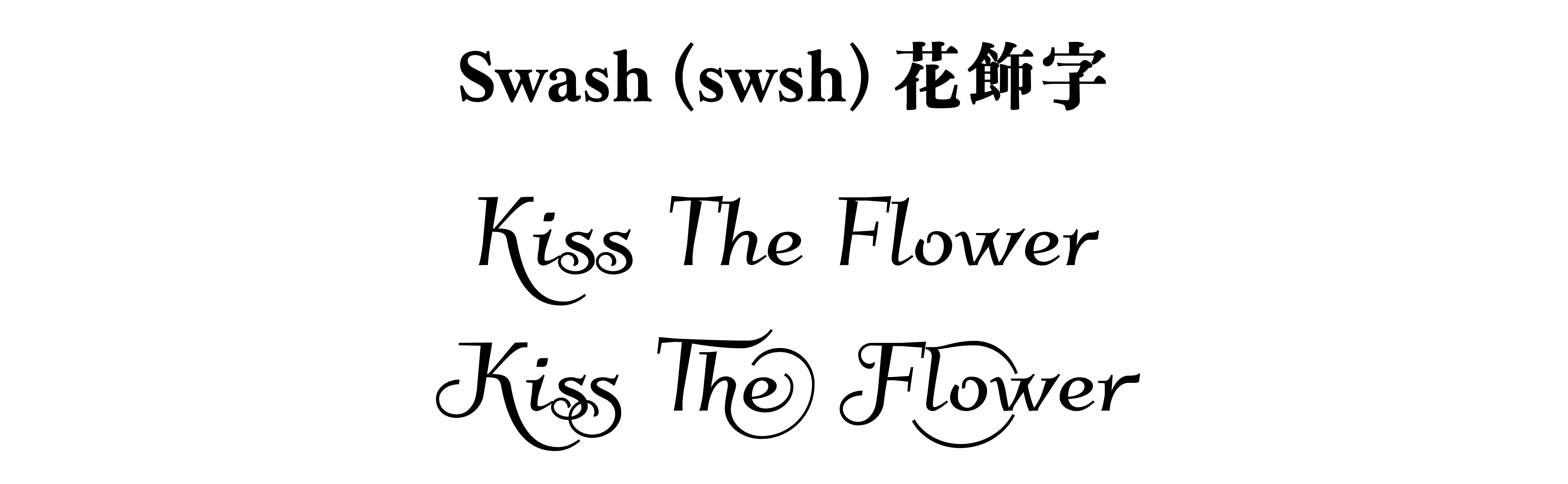 通常在設計歐文手寫書法字型的時候,會額外設計用來替換大寫字符的花飾字符,總而言之用了就會很浮誇,很適合用在標題的設計。