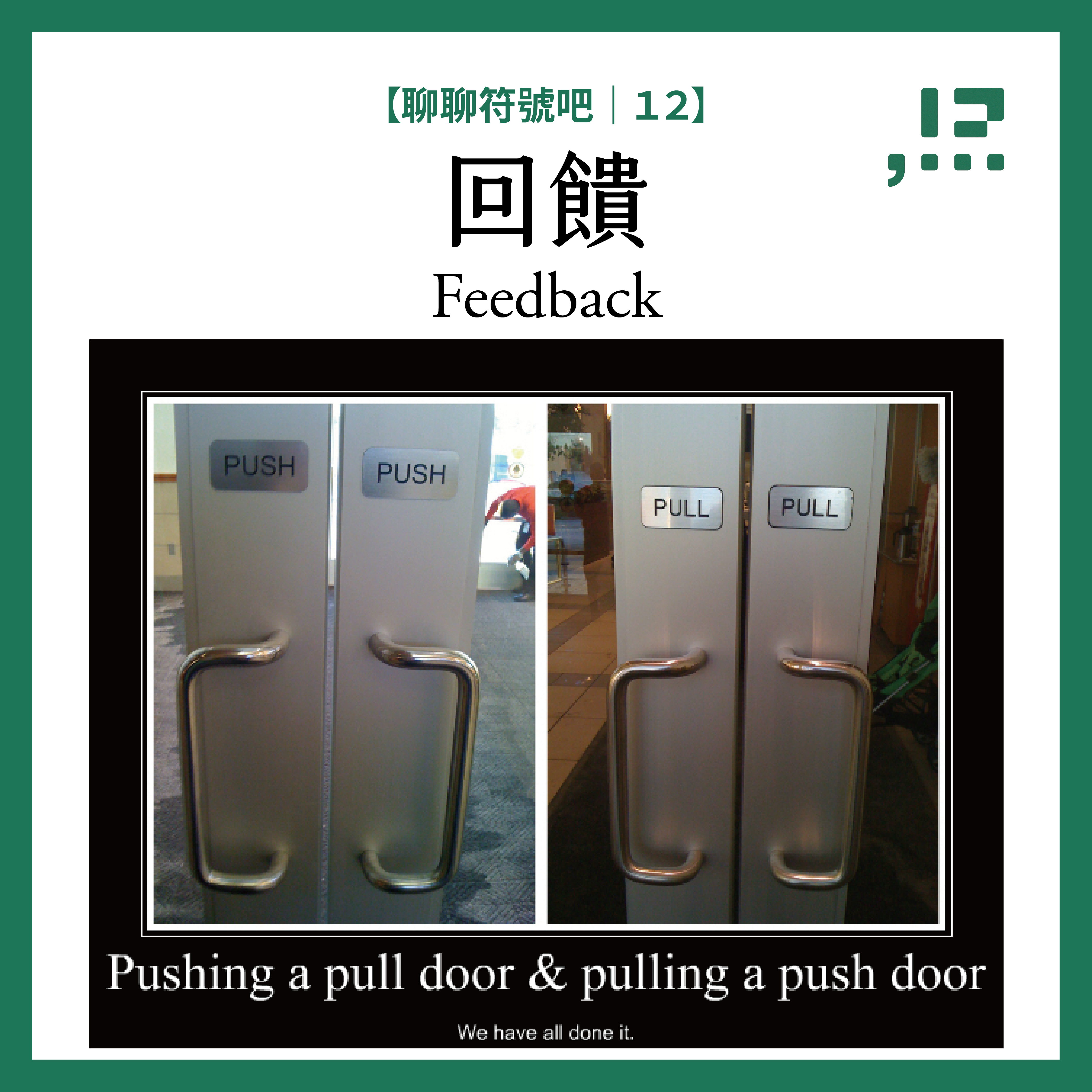 我們確實可以嘗試先推推看,如果推不動就再拉拉看,就跟我們插隨身碟一樣,插不進去就反過來再試一次(雖然通常會發現第一次的方向才是對的)。但這一來一往的修正,都代表門上的文字沒有正確地將訊息傳達給眼前的人,而這其實是可以透過回饋機制來規避的。