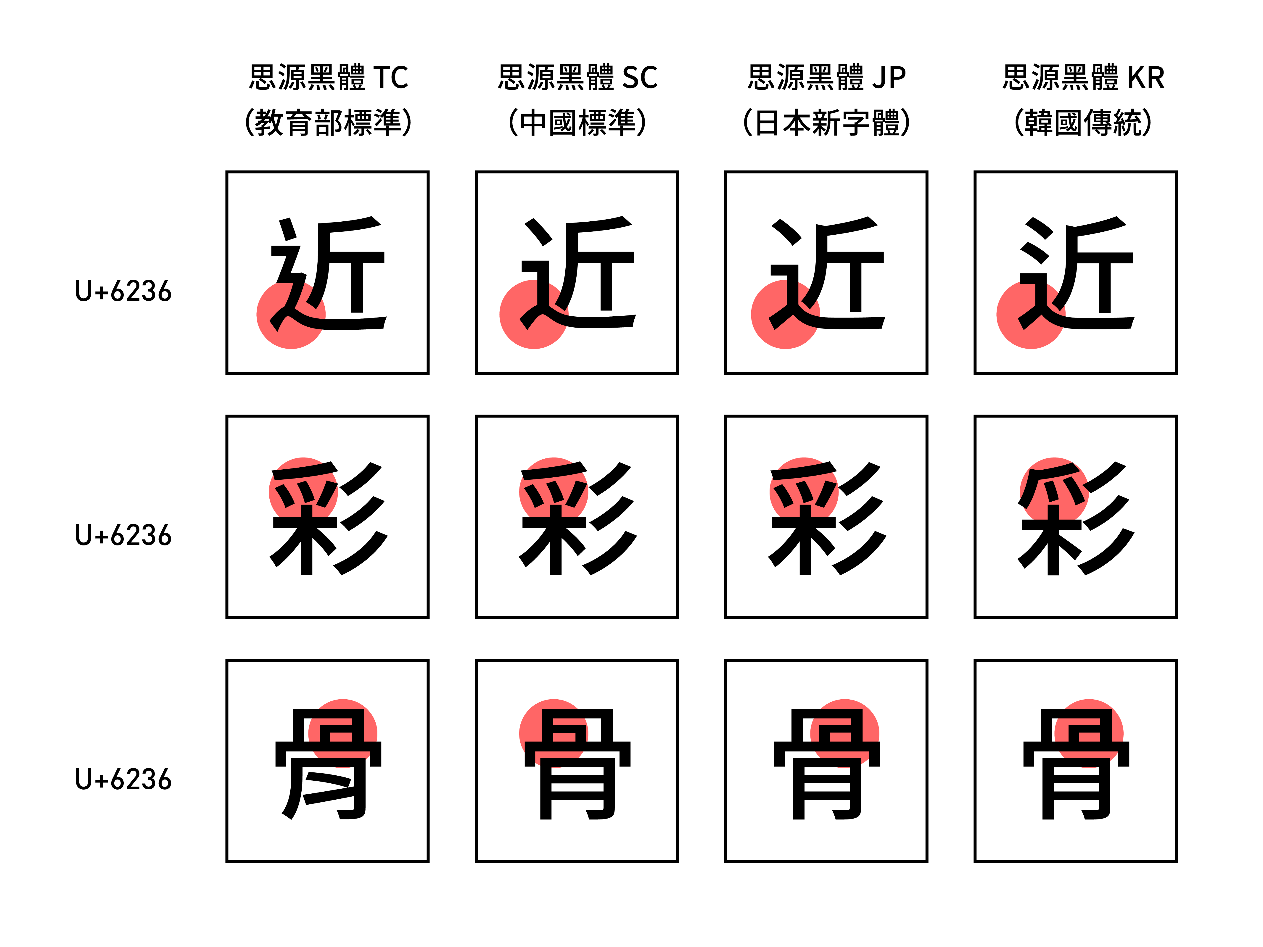 只能說 Unicode 的這個規定雖然能大幅簡化了碼位的需求,卻為設計師與工程師帶來了新的挑戰;而這些文化與人文的微小細節,就是用心與否的關鍵所在。